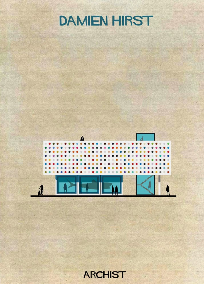 Итальянский архитектор и иллюстратор Федерико Бабина проанализировал работы ряда знаменитых художников и создал несколько иллюстраций зданий, каждое из которых демонстрирует индивидуальность отдельно взятого мастера. Взяв за основу цвет, форму и стиль ему удалось соединить воедино две формы визуального искусства - живопись и архитектуру.